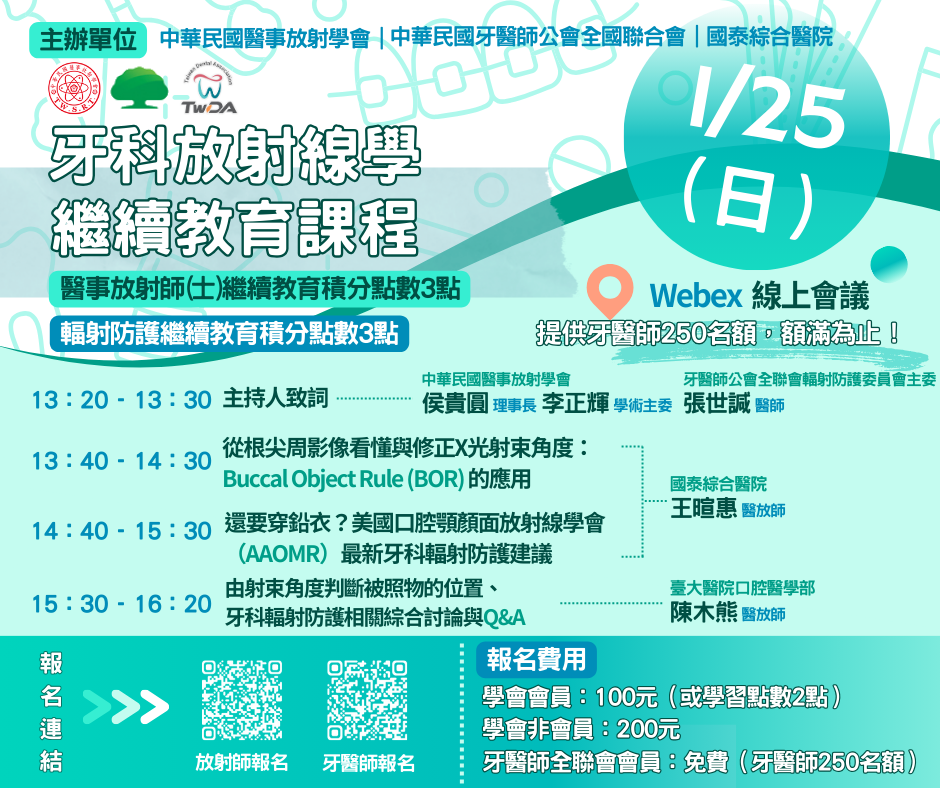 115年1月25日牙科放射線學繼續教育視訊課程即日起接受報名