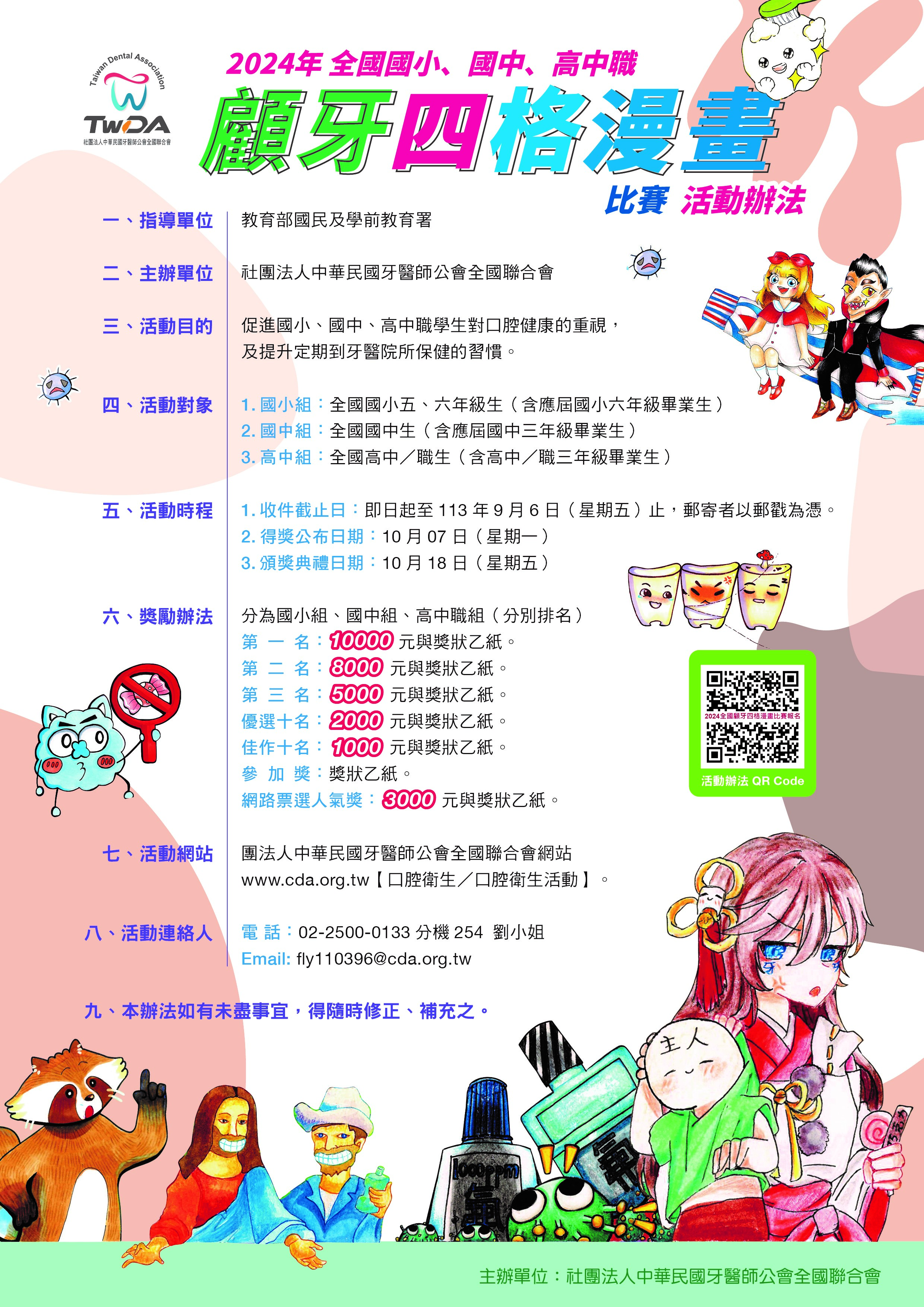 2024年全國國小、國中、高中職顧牙四格漫畫比賽活動辦法
