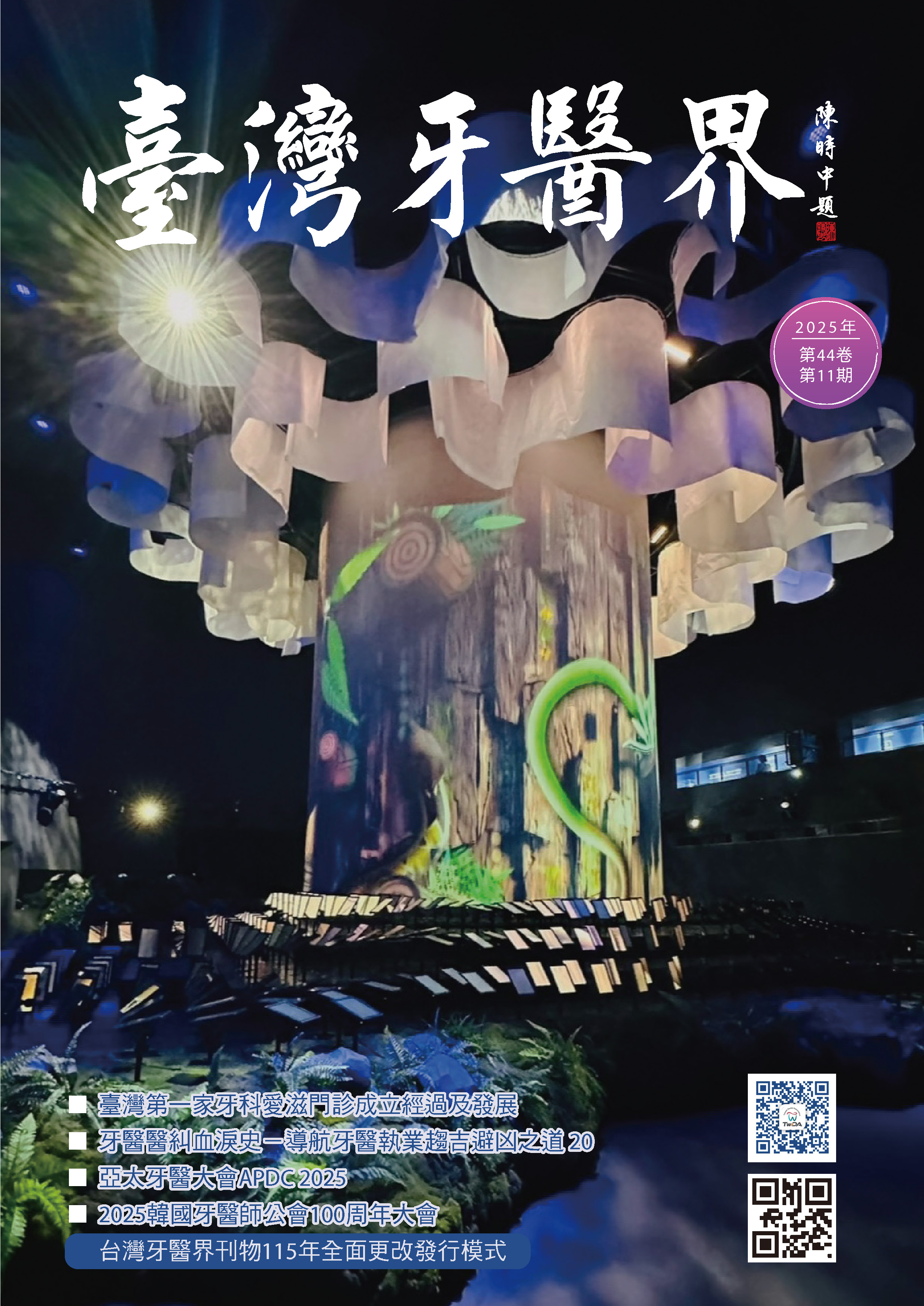 臺灣牙醫界第44卷第11卷(2025年11月) 歡迎各位會員醫師們投稿於臺灣牙醫界,詳細請參閱檔案最後頁相關規定。