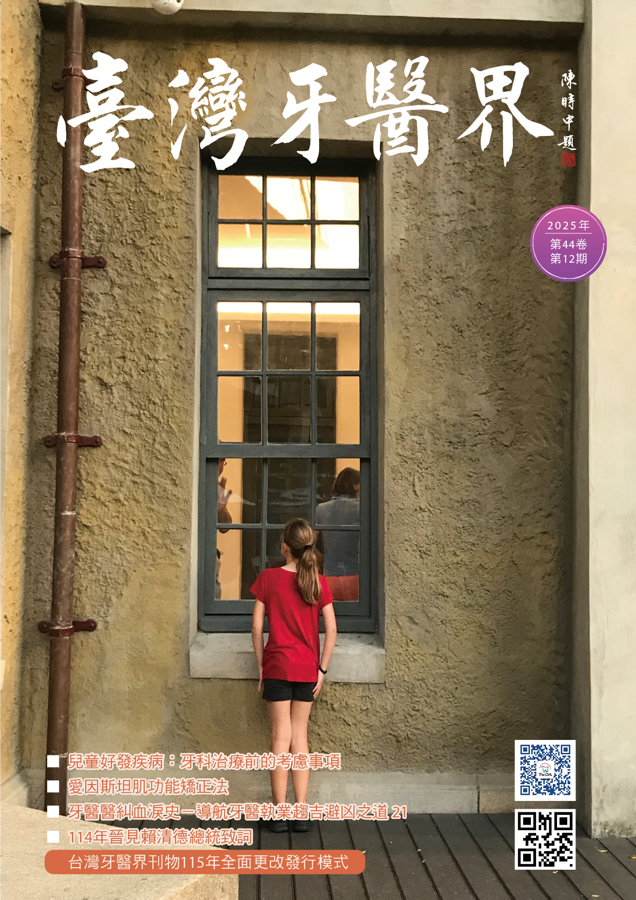 臺灣牙醫界第44卷第12卷(2025年12月) 歡迎各位會員醫師們投稿於臺灣牙醫界,詳細請參閱檔案最後頁相關規定。