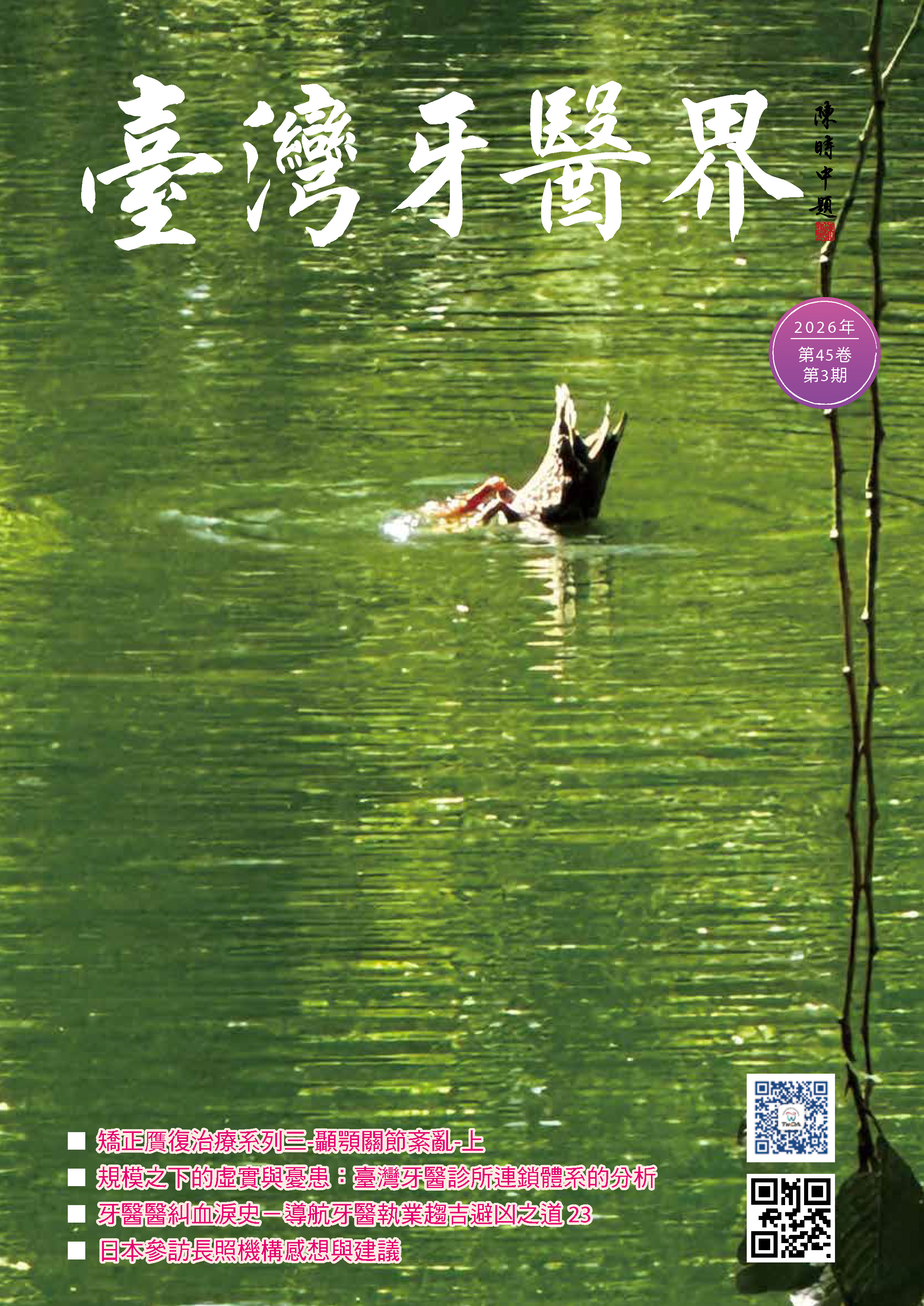 臺灣牙醫界第45卷第3卷(2026年3月) 歡迎各位會員醫師們投稿於臺灣牙醫界,詳細請參閱檔案最後頁相關規定。